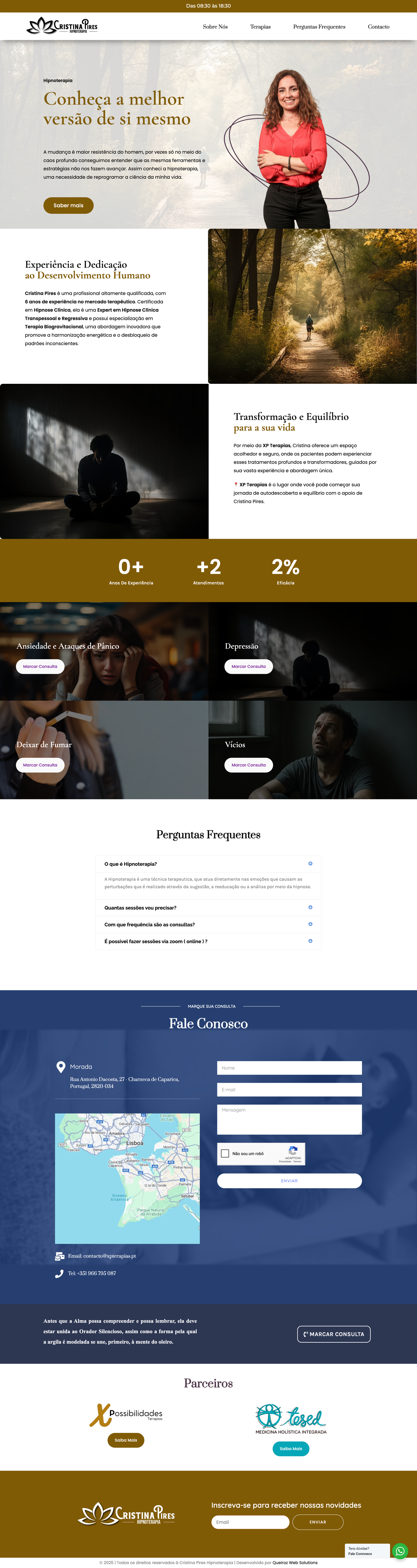 Otimização para carregamento rápido, sem comprometer a qualidade visual, e fácil integração de formulários de contacto e agendamento de consultas.