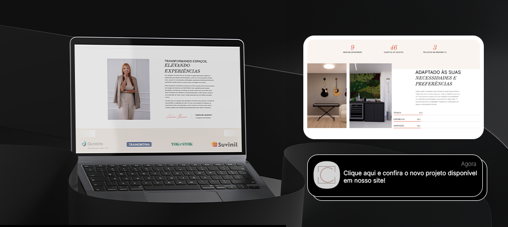 Layout personalizado alinhado à identidade visual do nicho de interiores.